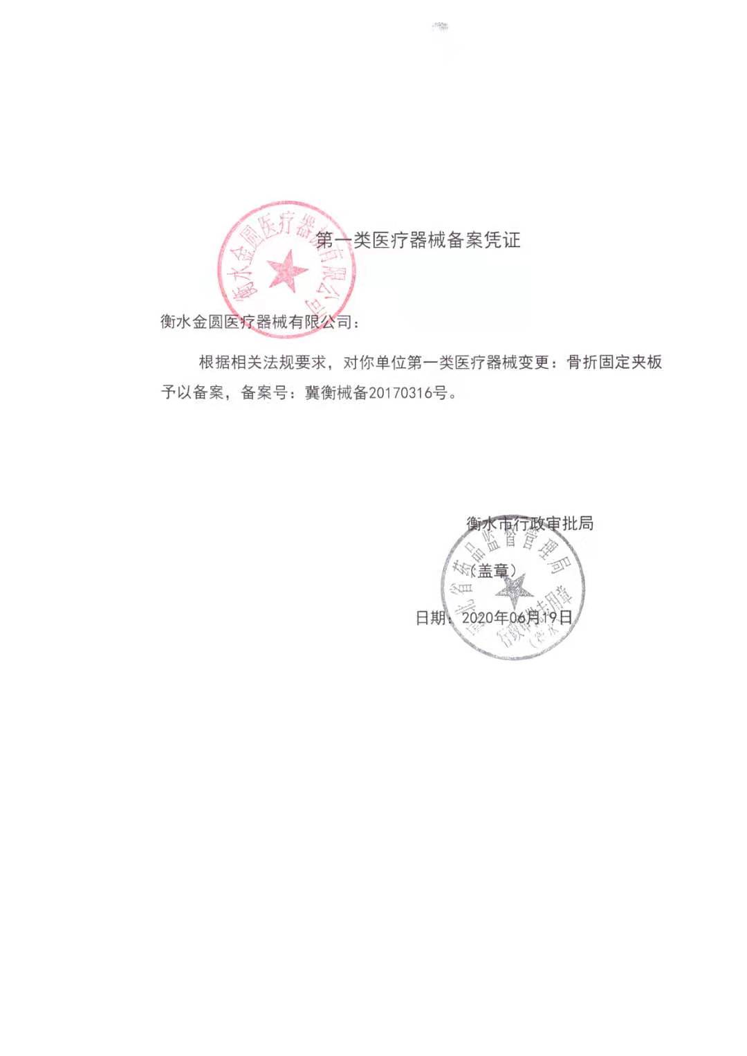 骨折固定夾板**類醫(yī)院器械備案憑證