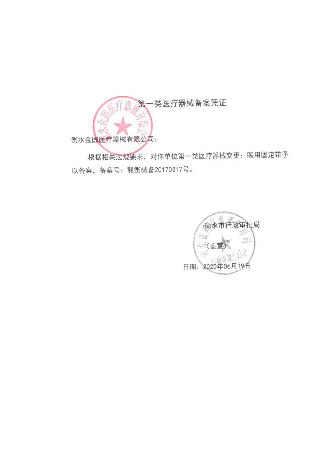 醫(yī)用固定帶**類醫(yī)療器械備案憑證